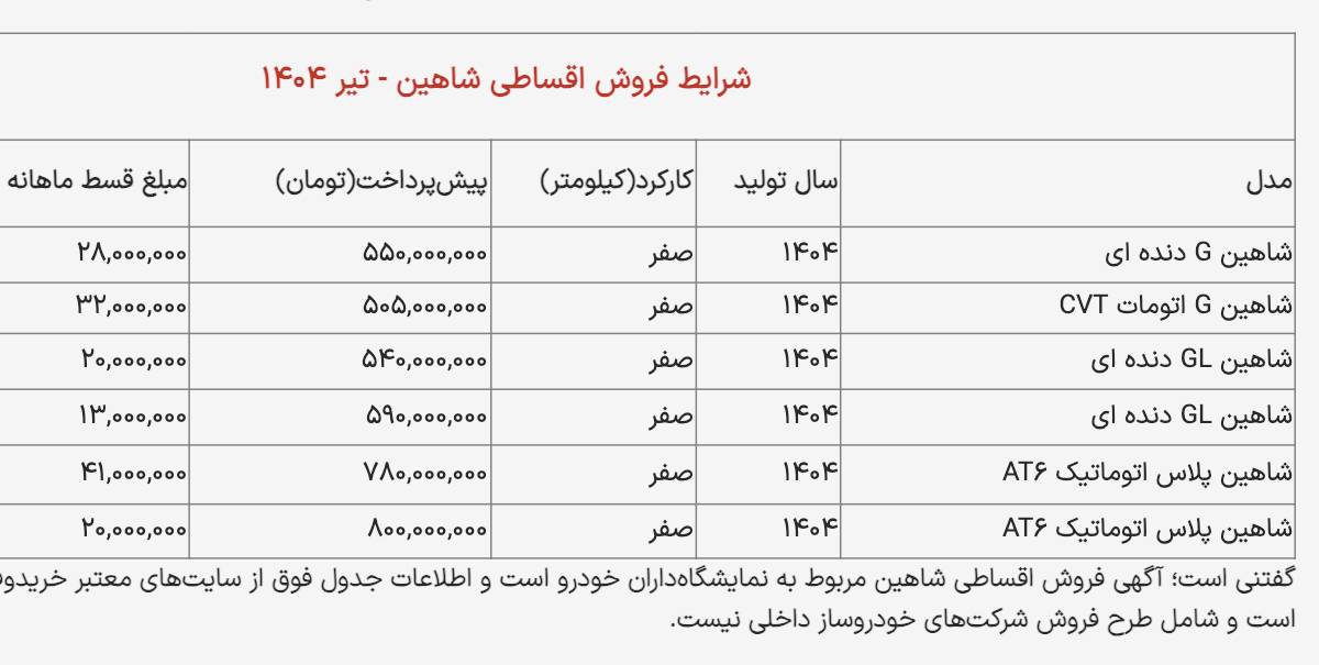 شرایط جدید فروش اقساطی شاهین / با ماهی ۵۰ میلیون شاهین اتومات بخرید! + جدول تیر ۱۴۰۴بر اساس جدیدترین آگهیهای فروش اقساطی شاهین، شاهین…16 جولای, 22:06شرایط جدید فروش اقساطی شاهین / با ماهی ۵۰ میلیون شاهین اتومات بخرید! + جدول تیر ۱۴۰۴
